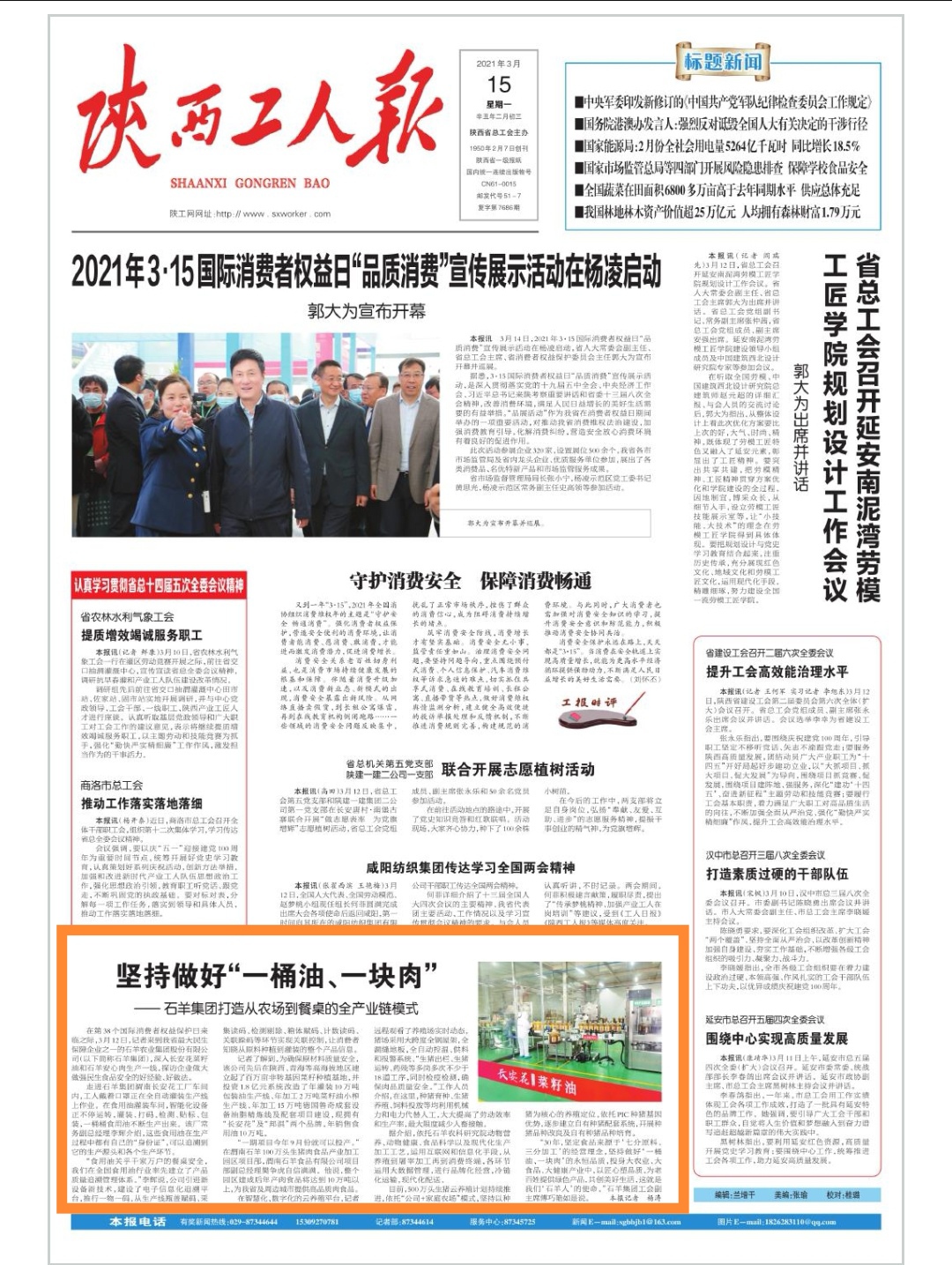 第39個(gè)國(guó)際消費(fèi)者權(quán)益保護(hù)日前夕,陜西日?qǐng)?bào)、西部網(wǎng)、陜西...